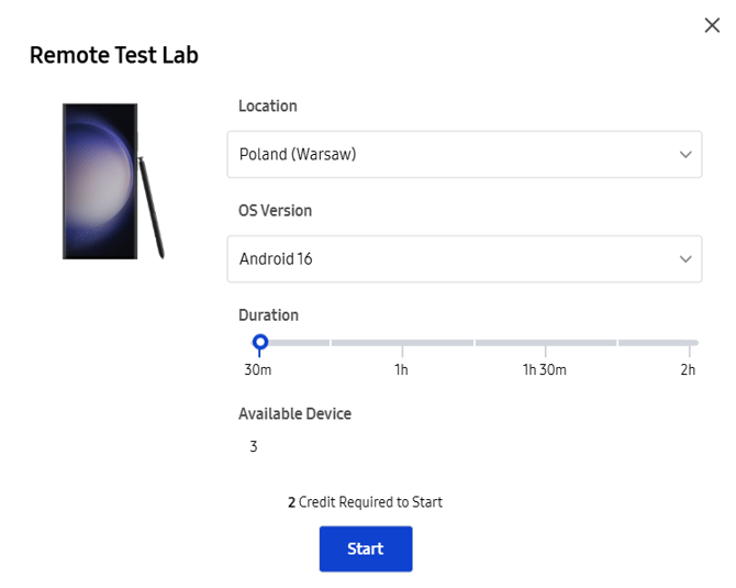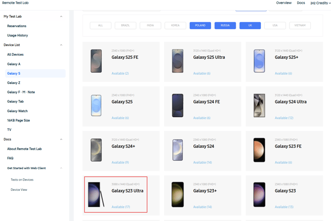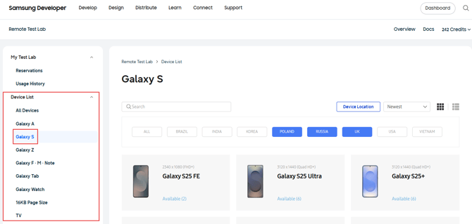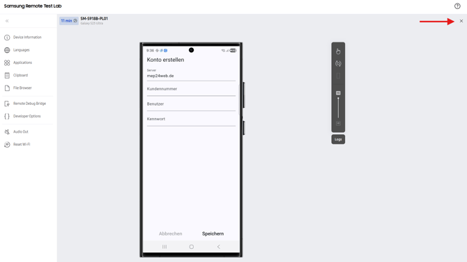 1.) Folgende Seite öffnen: https://developer.samsung.com/remotetestlab/device
