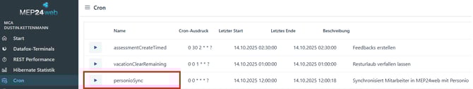 3.) auf "personioSync" klicken und warten, bis die Zeit in der Spalte "Letztes Ende" erscheint.