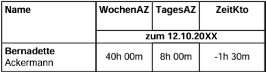 | TagesAZ | Hier wird die Tagesarbeitszeit bezogen auf die Vertragszeit und Grundlage angezeigt. |