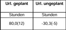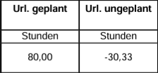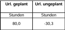 Hier wird der Urlaub im Urlaubskonto in Stunden verwaltet und in Stunden angezeigt. Bei den Zahlen nach Kommastellen handelt es sich um Industrieminuten (Beispiel: 0,33 = 20 Minuten, 0,5 = 30 Minuten).