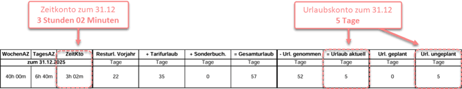 2. Urlaubskonto: "Änderung Urlaubskonto zum..."