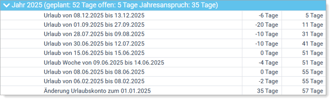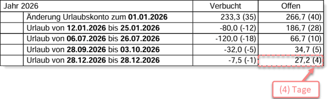 Abb.2: Urlaubskonto nach der Umstellung von Standard auf Bewertet: