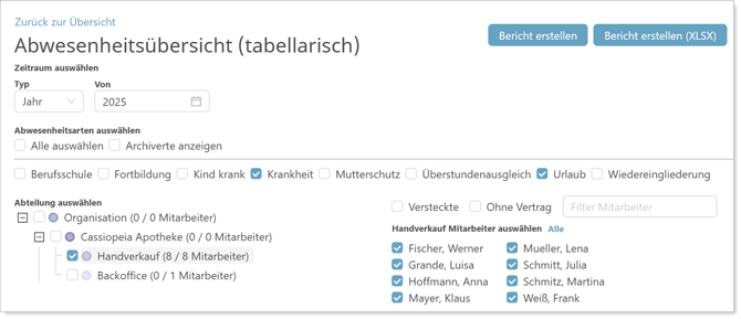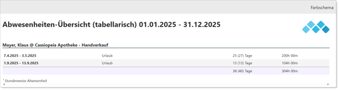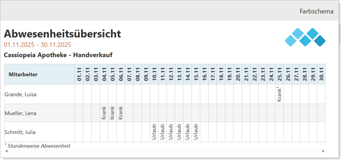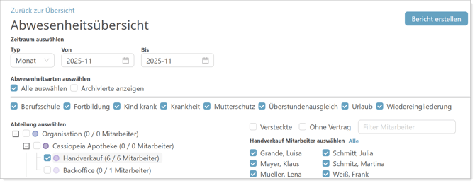 Bericht: Abwesenheitsübersicht