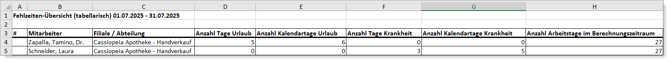 Fehlzeitenübersicht (tabellarisch) XLSX