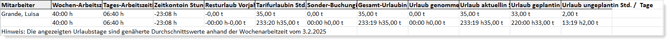 | Tarifurlaub in Std./Tage | Hierbei handelt es sich um den hinterlegten Urlaubsanspruch. |