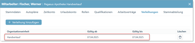 1. Verwaltung -> Mitarbeiter -> Mitarbeiter auswählen -> Verleihungen