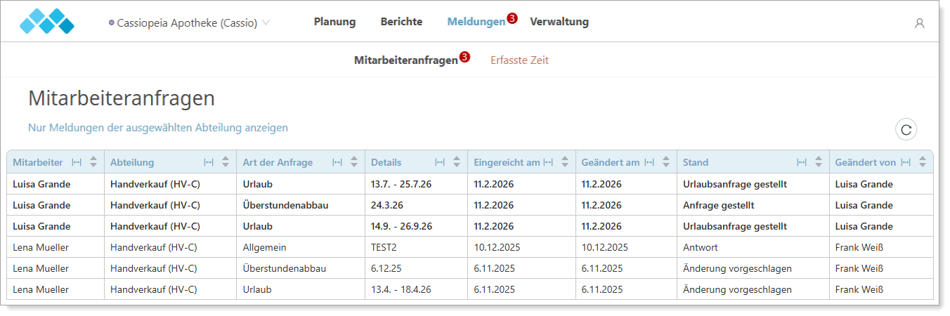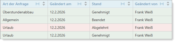 Nach der Bearbeitung der Mitarbeiteranfragen werden die Statusanzeigen automatisch angepasst.