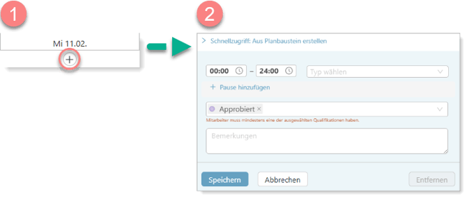 - Auf Schnellzugriff: Aus Planbaustein erstellen klicken und einen Plan aussuchen.