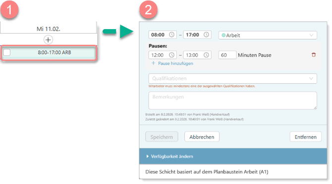 "Schicht" durch den planungsverantwortlichen Mitarbeiter übernehmen: