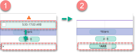 Im Planer wird der übernommene Plan entsprechend dargestellt. Das orangene Dreieck aus dem Qualifikationscheck wird ausgeblendet, da ausreichend Mitarbeiter geplant wurden. Der übernommene Plan wird mit einem Kreuz versehen.