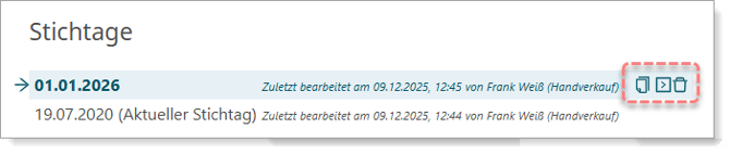 1. Rechts unter Stichtage auf das Kopie-Symbol (Kopieren für neuen Stichtag) klicken.