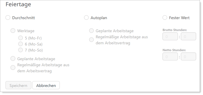 - Wählen Sie die gewünschte Berechnung für den Feiertag aus, und bestätigen diese mit Speichern.
