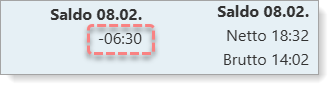 Zeigt die tagesaktuelle Differenz zwischen der Sollzeit aus der wöchentlichen Vertragszeit und Ist-Zeit.