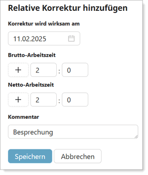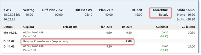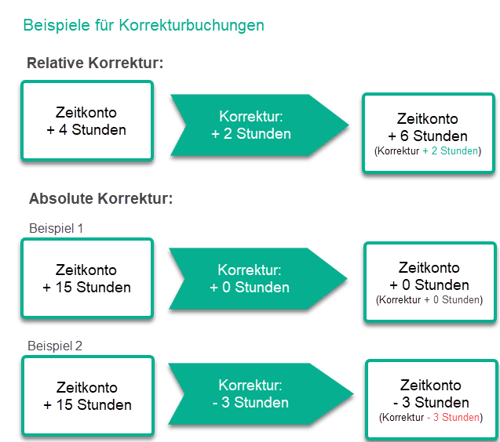 Relative Korrektur: Das Zeitkonto verändert sich um den Wert der Buchung.