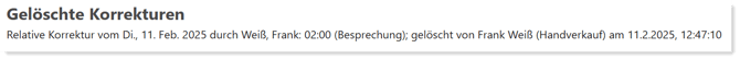 Zeigt die gelöschten Korrekturen an. Klicken Sie hierfür unten den Button Gelöschte Korrekturen anzeigen an.