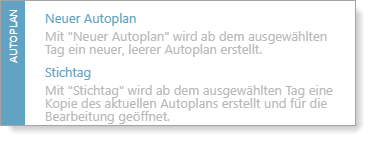 - Neuer Autoplan: Einen neuen Autoplan erstellen.