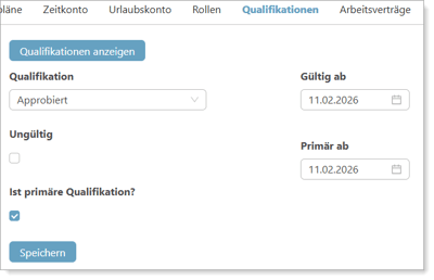 - Qualifikation auswählen -> Gültig ab: Startdatum auswählen