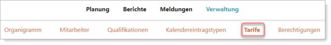In einem Tarif tragen Sie die Vertragsdaten (Name, Gültig ab, jährliche Urlaubstage, wöchentliche Arbeitsstunden), die Ampel (Schwelle zur farblichen Anzeige der Über-/Unterstunden), die Berechnungsgrundlage, die Feiertagsberechnung und die Berechnungseinstellungen für Kalendereintragstypen ein. Mit Gültig ab legen Sie den Stichtag fest, ab dem die Einstellung greifen soll.