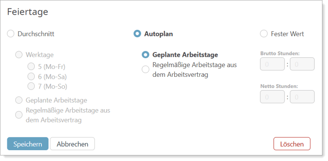 Für Nichtverfügbarkeiten mit dieser Berechnungsregel werden exakt die Stunden dem Zeitkonto gutgeschrieben, die im Autoplan für diesen Tag eingetragen sind.