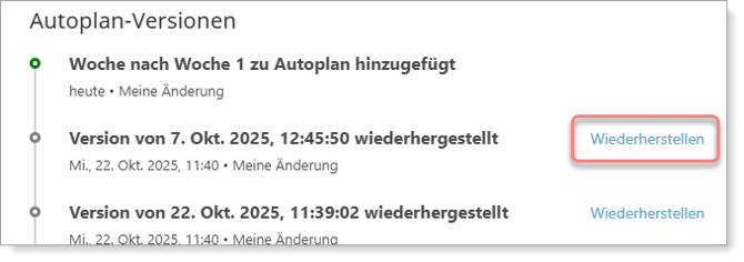 Jede Änderung im Autoplan wird über den Änderungsverlauf dargestellt und kann jederzeit aufgerufen und wieder rückgängig gemacht werden.